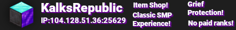 Want to play on a new Minecraft server without having to worry about it being shut down? Then Join "Kalks Republic"!