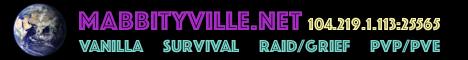 MabbVille is a Vanilla Survival server. Raid/Grief/PvP/PvE. Spawn, Sethome, TP (command blocks, no pluggins). Adult content. Hate speech/bigotry will not be tolerated.
