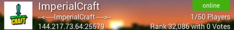 Welcome to ImperialCraft! A small fun community bringing you a survival experience. Join for custom items and a booming economy!