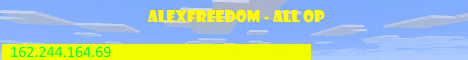 Welcome to Alexfreedom ALL OP JOIN NOW!! 24/7 HAVE FUN I OWN IT!!!!!! HAV EFUN ASK FOR OP WHEN ON! DONT GRIEF YOU WILL BE BANNED!!!! HAVE FUN JOIN NOW!!!!!!!!!!!!!!!!! NICE STAFF MEMBERS!!!!