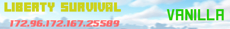 Liberty Survival is a brand new vanilla survival Minecraft server, with an emphasis on economy and freedom. You can build a at spawn, you can make a shop using the EssentialsX plugin, and you can communicate with other players. We also have a discord server.