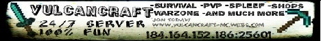 Introducing VulcanCraft a awesome multiplayer 75 slot survival server with friendly staff, and tons of fun games and events.