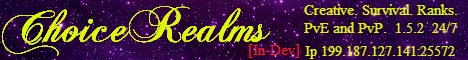 Hello this is ChoiceRealms. We are a multiworld hybrid server with lots to do. We are currently in development and looking for some help, If you are interested in helping us build this server please join and ask Phoenix_Frenzy or DarkEliite in game for more details. Possible outcomes of helping out are staff ranks or elite Architect or Artisan Ranks. Hope to see you soon!