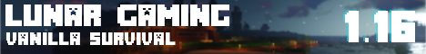Lunar Gaming Vanilla Survival is an Community based Minecraft server with the aim to welcome everyone (18+ of age). Currently running 1.16 and constantly updating.