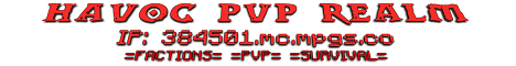 Havoc PvP where legends our born! Join now to become the best, fight with friends or fight alone factions allows you to take on other players in epic ways! Raid other players then blow there place to pieces! 'One of the best pvp servers I have ever played' -Notch Sharpen your swords and tighten your bows and join now!