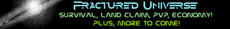 Fractured Universe is a new land-claim based survival server. We plan to feature PVP arenas, and/or an area for PVP/Factions. We are actively working on an economy, shops, an auction house, and so much more!