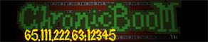 ChronicBOOM is a Gaming Community where friends come together to play games. Our ChronicBOOM Minecraft Server is a Bukkit server for players who want to get a Survival experience along with Shops, MiniGames (like BlockHunt and GolfCraft) and some other great plugins for Ranks to get more commands and DisguiseCraft to have fun and fool your friends with disguises! Come join us on the server and at http://chronicboom.net!!
