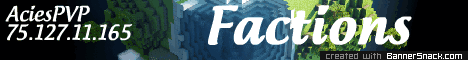 This is AciesPVP! Join now and get a piece of the Factions PVP action! This is a **NEW** server! Get on and get a head start. We need players to fill up the 60 slots. This is a 24/7 Factions PVP server with great staff! Just join and play! No promotion needed!