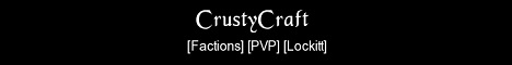 CrustyCraft is a PVP server, with many plugins such as Factions and Lockitt. We have a good community and an awesome staff. We treat all new players well and apply reasonable rules.