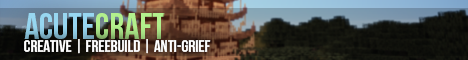Acutecraft is a 24/7 creative, freebuild server that is open to people of all ages and nationalities. We have a strong community and offer various workshops designed to help people improve their building skills as well as building contests and other fun events. We do use graylisting so expect to start out using /i to spawn items and work your way up through the ranks.Creative mode is earned at member rank and as you progress through the ranks you will earn access to World Edit and Voxel Sniper, as well as multiple themed worlds. We all work hard to provide a grief-free environment with a family friendly atmosphere that is suitable for builders of all ages.
