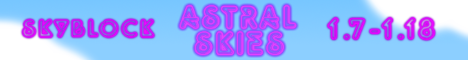 Welcome to Astral Skies!- 1.7 - 1.18. We are an up and coming Skyblock Survival server with many features to make your experience as enjoyable as possible. Whether you want to compete against others to gain that top island spot, show off your creativity and building skills, or just have a laid-back casual Skyblock experience, youre welcome here. We prioritize a non-toxic and friendly environment fit for all ages and backgrounds. Enjoy your stay!