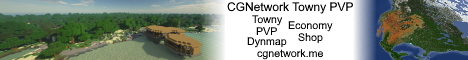 CGNetwork Towny PVP is a map based off the real world globe. Utilizing online world browser map Dynmap and Towny plugins to give players the best pvp experience. This is a simplistic style server with territory claiming and small team sizes.