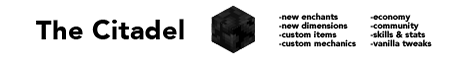 Our goal with the Citadel is to provide an exciting survival and builder multiplayer experience by expanding upon core aspects of gameplay without changing or removing much from the original vanilla experience. To achieve this, we've got a long term progression system and expanded endgame with skills and stats, rankups, new dimensions, custom enchants, a player-based economy, NPC traders, fun crates, and custom & QOL datapacks! We focus on building the community, players are helpful and we have knowledgeable staff. The owners and admins are easily accessible for any questions or help.