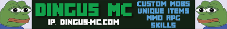 Dingus MC is a new MMO survival server proving an enhanced vanilla experience for regular Minecraft players. Don't you hate logging on to a server and being stuck in a hub with 20 different places to go? We jump you right into the action at spawn. Just /rtp out and start playing!