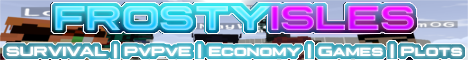 FrostyIsles is a fun, laid back, semi-survival server here for you and your friends to enjoy the vanilla feel of Minecraft. We provide plots for players who want their stuff safe and secure from potential griefers. We have a player driven economy, players determine the prices. We have PVP with PVE zones for players who just want to enjoy Minecraft.