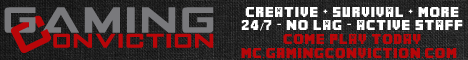 Welcome to Gaming Conviction: Minecraft! Our active community features enough maps and features to suit any player's style. Whether you like building awesome houses in creative, or trying to survive the night in survival, we've got a place for you!