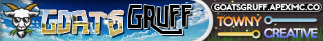 GoatsGruff is a server that is heavily based on growing a fun and positive community. We have a towny world with no breaking unless you own the land, a creative world, and a resource world that you can gather all your materials to grow your town.