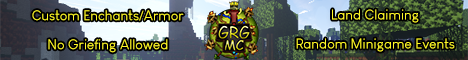 Looking for a server that feels vanilla, but with some new changes to spice things up? Look no further! GRG:MC is a survival server built with the community in mind. Through a combination of community ideas, GRG:MC has evolved with custom enchantments, armor, talisman buffs, and minigame events to keep Minecraft fresh and exciting!