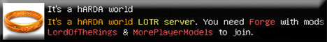 It's a hARDA world is a 1.7.10 Minecraft modded server! To join it you are required to have the latest version of the Lord of the rings (lotr) mod and to have the more player models mod as well.