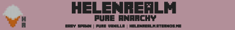 HelenRealm is an early-in-life pure anarchy vanilla survival Minecraft server with a nice spawn and where everything is allowed, where the server´s admin never uses his power to interfere with most things going on, if you want a server that is early in it´s life and where you can get settled easily, this is the one.