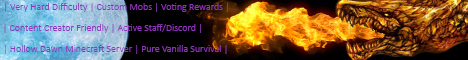 This server is never laggy this is 100 Survival. Just hop on and play this is 24/7 feel free to check out the owners youtube channel: tomeo daily. we are looking for everyone to join the fun. We do not tolerate hackers, cussing, or Spam in the chat. these things are not ok we want everyone to play so kid friendly please. We are still in BETA. New custom mob the Hollow Dawn Killer coming soon!
