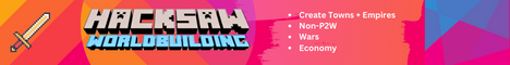 Hacksaw Worldbuilding is a server built around roleplay, building nations and towns, and a great community.