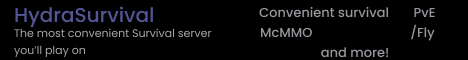 HydraSurvival is a toxic free, convienient, and polished minecraft server. This will be the most convenient server you'll play on. All members have kits, /fly, and much more! We have incredible staff members that will help and resolve issues, listen to suggestions and give you advice! We hope you join and give us try!
