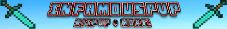 This is our server called InfamousPvP! We are a KitPvP server, and you can find some amazing stuff here! We also have Survival, Skyblock, and Plots! Join InfamousPvP and have fun now! You can also join our discord server! https://discord.gg/5qhnxaA