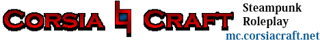Corsia Craft is a Steampunk themed roleplay server that has been in the works for a year and a half, with admins who have been running similar servers for two and a half. Corsia Craft features a large, lovingly crafted and detailed Steampunk city and greater island, rich lore that evolves through player events, dynamic politics and faction relations, and highly energised and dedicated staff. For additional information, our own forums, or to apply for staff, please visit our website.
