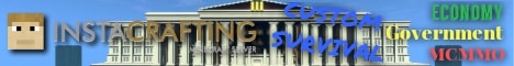 Instacrafting is a City Style RPG server which implements housing, taxes, and government. Play as a citizen, get elected, buy a house, or run a city. Travel around the map using train systems, subway systems, or airports. Instacrafting is not only a City Style RPG server, but it also has survival gameplay implemented. Feel free to travel around to the map and play in the open world.