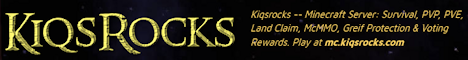 Kiqsrocks is mostly vanilla Minecraft Server built by a long time fan of vanilla play. Most plugins used prevent the theft, grief of your creations, and hacking, As you play you can earn ranks and one time rewards for voting, McMMO was added just because its fun to keep score and compare your self against your friends.