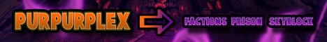 Purpurplex is Version 1.10.x - Purpurplex is a friendly Network which consists of Factions, Skyblock, Prison, Creative and PvE. We have friendly and helping Staff who wish all players to have a great and enjoyable time on the server. Purpurplex is currently looking for Staff and of course valuable and respectful players. : Purpurplex is still somewhat in construction, Shop for some of the worlds, and Prison, Creativeand PvE are still in the works. Factions and Skyblock are all setup and ready for a player to start his/her adventure! Come on and play and enjoy the work we have put into Purpurplex!