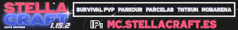 StellaCraft es un servidor survival con protecciones, un pack de texturas custom, encantamientos especiales y muchas cosas mas!