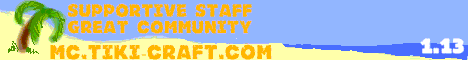 Welcome to Tiki-Craft, a non-grief, no PvP server! Our server has a vast array of over 50 plugins such as CraftBay, Parkour, GChestShop, and PlotMe as well as an easily understood ranking system. We are community focused and are proud of our non-toxic environment we have created. Come join us :)