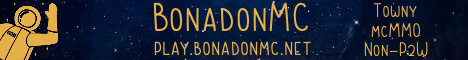 BonadonMC is a Minecraft server focused on the theme of all things aeronautics! Currently, we only offer our Towny gamemode with an in-game shop and other cool features. You can access various cosmetics such as particle trails, pets, and nicknames/titles by purchasing one of our ranks. More features are expected to be added as time goes on.