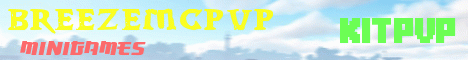 BreezeMcPvP Is an amazing server with a network variety of minigames such as kitpvp,speedrunner,mcteams and more to come! We have had multiple donations and we have custom plugins some aren't but some are.. We got friendly and amazing staff and build team! Want to join us? Breezmcpvp.enjin.com