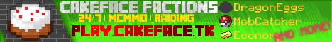 CakeFace Factions is a factions server focused on just having fun. We have easy to understand plugins such as MCMMO, Essentials, and MobCatcher. We hope to see you on the server!