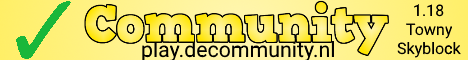 De Community Minecraft server is een gezellige server waar wij diverse gamemode aanbieden waaronder een Skyblock en een volledig geupdate Towny server. Onze server is een server waar je voornamelijk gezellig met vrienden op kan gamen en nieuwe mensen kan leren kennen.