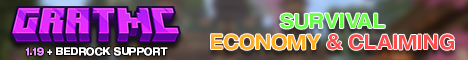 [1.19] Welcome to the ultimate survival experience! GratMC combines the excitement of survival with the thrill of an economy-based gameplay. Our community is made up of friendly players who are always eager to help each other out. With our user-friendly features, you'll find yourself fully immersed in the survival aspect of Minecraft. From gathering resources to trading with other players, you'll have everything you need to thrive in this virtual world. See you in game! [Java + Bedrock Supported]
