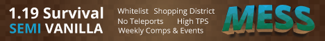 MESS Vanilla SMP is a Semi Vanilla Survival Minecraft server with minimal quality of life additions and active community management. (And a minor obsession with chickens.)