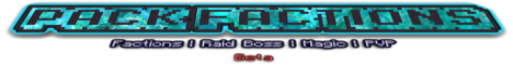 Welcome to the PackFactions beta! Help us test our unique format for a classic MC Gamemode with monthy custom world boss events! Earn unique rewards while you master Magic skills, or MCMMO abilities. Build an empire with your friends and conquer the world. Express yourself with cosmetic skins for your weapons, effects, trails, and pets!