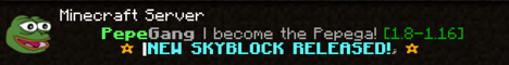 Enjoy our new server with Skyblock, and more! The server is new so you can only play skyblock yet. More gamemodes are coming! Join our server and experience the life of a Pepe!