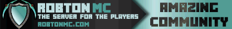 RobtonMC is a fast-growing survival community sporting a very, very active staff team. We are massively player-focused and all updates and fixes are chosen by the players! We don't believe in paying to win, therefore we give every player the chance to earn the same supplies, materials and armor that donators can earn. We have many plugins, including Custom God Armor, Jobs, Stores, Quests, Minigames, and much, much more! Great builds, fantastic players and an ever-expanding community full of players that love to build. Need to know more about our fantastic server? Head in game now and check us out!