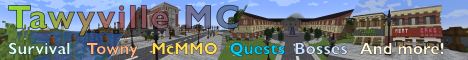 Tawyville is a relaxed survival experience featuring daily quests and an MMO style of play. Protect your claim with Towny, buy and sell on the auction house or personal shops, and coordinate with other players to take down powerful bosses for incredible loot!