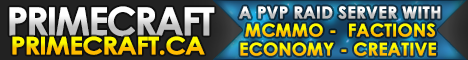PrimeCraft is a PvP raid server with McMMO, Factions, Economy, and many other plugins. On the server griefing is allowed, so be careful.