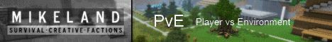 A new twist on Player Vs Environment! With dragon travel, 4 epic mob arenas, mcmmo to keep you competing for high stats (no PvP or griefing of course) and much, much more, Mikeland PvE is sure to keep you hooked for hours at a time! With friendly moderators you won't want to be anywhere else! So come on and have a play today!