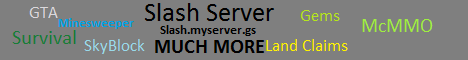 Join Slash as a growing community and a survival server with plenty of custom stuff to keep you up for hours! Including Pets, furniture, and even rideable vehicles! Lots of new stuff gets added daily due to the owner being on 9 hours a day! See you soon!