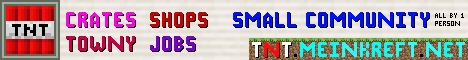 Welcome to TNT we have many things for you to try out. there is towny, economy, chest shops and rent able shops, special crystals and so much more.